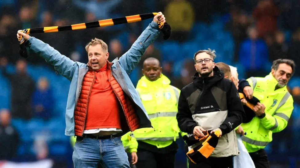 Sisi lain dari kemenangan gemilang lainnya bagi Sky Blues adalah hari yang memilukan bagi Sheffield Wednesday, dengan sekelompok penggemar melakukan protes di lapangan selama pertandingan melawan pemilik klub Dejphon Chansiri.